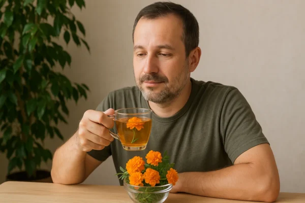 Pouca gente imagina que uma flor com cheiro forte e cor vibrante possa guardar uma farmácia natural dentro de suas pétalas. O chá de cravo-de-defunto, feito com as flores do Tagetes erecta, vai muito além do uso ornamental nas hortas: ele reúne propriedades medicinais ancestrais que atravessaram gerações. Com sabor marcante e um fundo levemente cítrico, essa infusão tem sido cada vez mais estudada por seus efeitos no sistema respiratório, digestivo e até no controle de dores do peito.