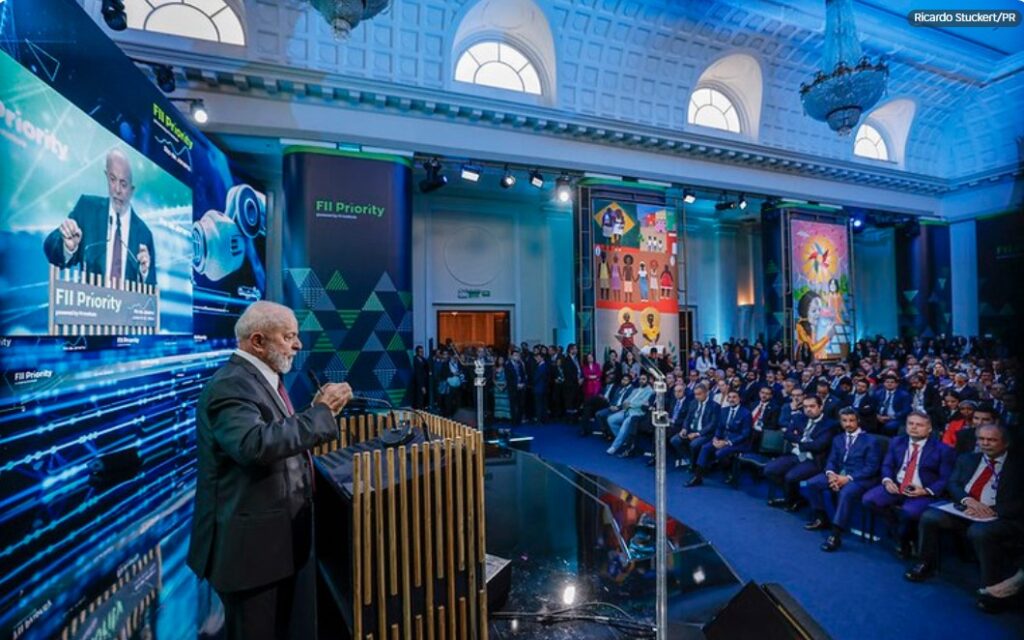 O presidente Luiz Inácio Lula da Silva participou, nesta quarta-feira, 12 de junho, da abertura do Fórum de Investimentos Prioridade 2024, organizado pelo Instituto da Iniciativa de Investimentos Futuros (FII Institute), no Rio de Janeiro. Com o tema “investir em dignidade”, o evento discutiu alternativas de investimento em áreas como transição energética sustentável, avanços tecnológicos, inovação e inclusão social, destacando a importância de uma nova ordem global que priorize a dignidade para todos.