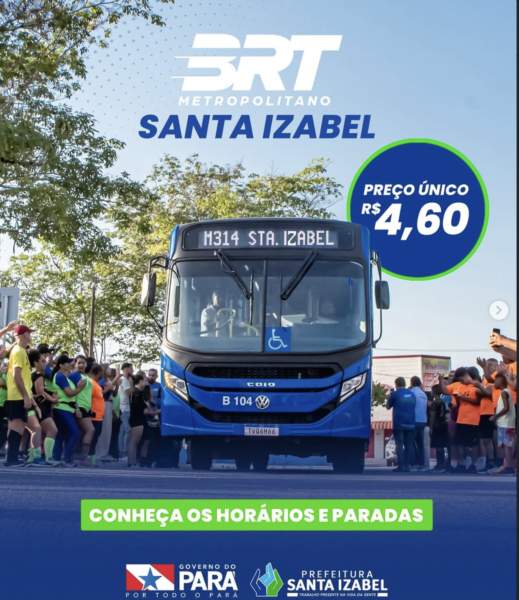 O BRT Metropolitano é resultado da parceria entre a Prefeitura de Santa Izabel do Pará e o Governo do Estado do Pará, reforçando o transporte público regional e oferecendo mais mobilidade à população.