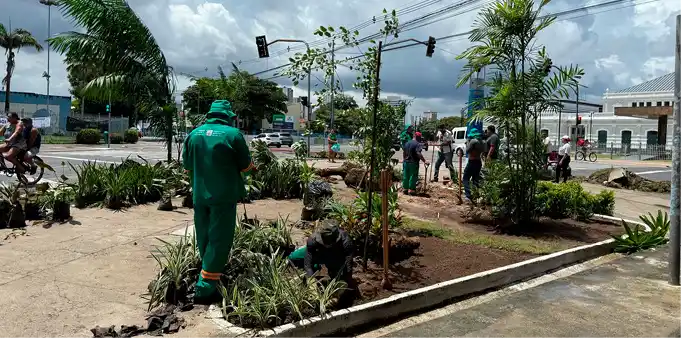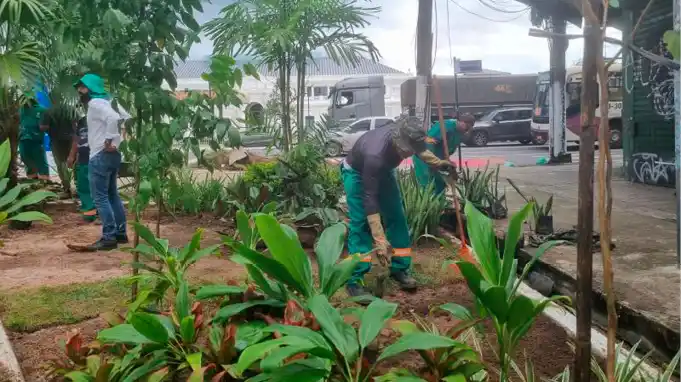 A Prefeitura de Belém, por meio da Secretaria Municipal de Meio Ambiente (Semma), revitalizou o calçadão localizado em frente ao Mercado de São Brás com um projeto paisagístico transformador. A ação foi realizada no último sábado, 12. O local, agora conhecido como uma charmosa pracinha, recebeu o plantio de diversas espécies forrageiras e o transplante de três palmeiras adultas, que já oferecem sombra e frescor imediatos.
