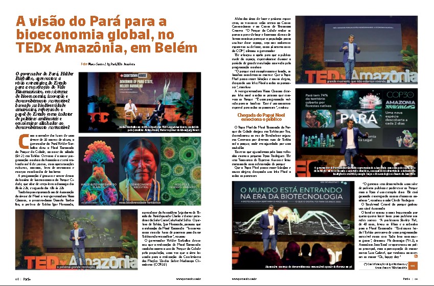 A revista destaca a participação do governador Helder Barbalho no TEDx Amazônia.