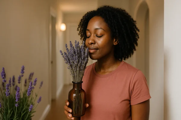 Existe uma explicação energética para o efeito da lavanda. Em termos de aromaterapia, o óleo essencial de lavanda é usado para reduzir ansiedade, melhorar o sono e promover relaxamento. Quando o aroma está presente logo no início da casa — como num corredor de entrada —, ele já prepara o visitante para um ambiente acolhedor.