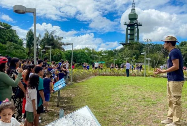 Abelhas nativas – Além de informados sobre o modo de vida e observar as colmeias, os visitantes provaram o mel produzido por abelhas nativas. Desde 2022, o Mangal das Garças desenvolve um projeto de criação de abelhas nativas sem ferrão, cujo objetivo é destacar a importância dessa espécie para o meio ambiente.