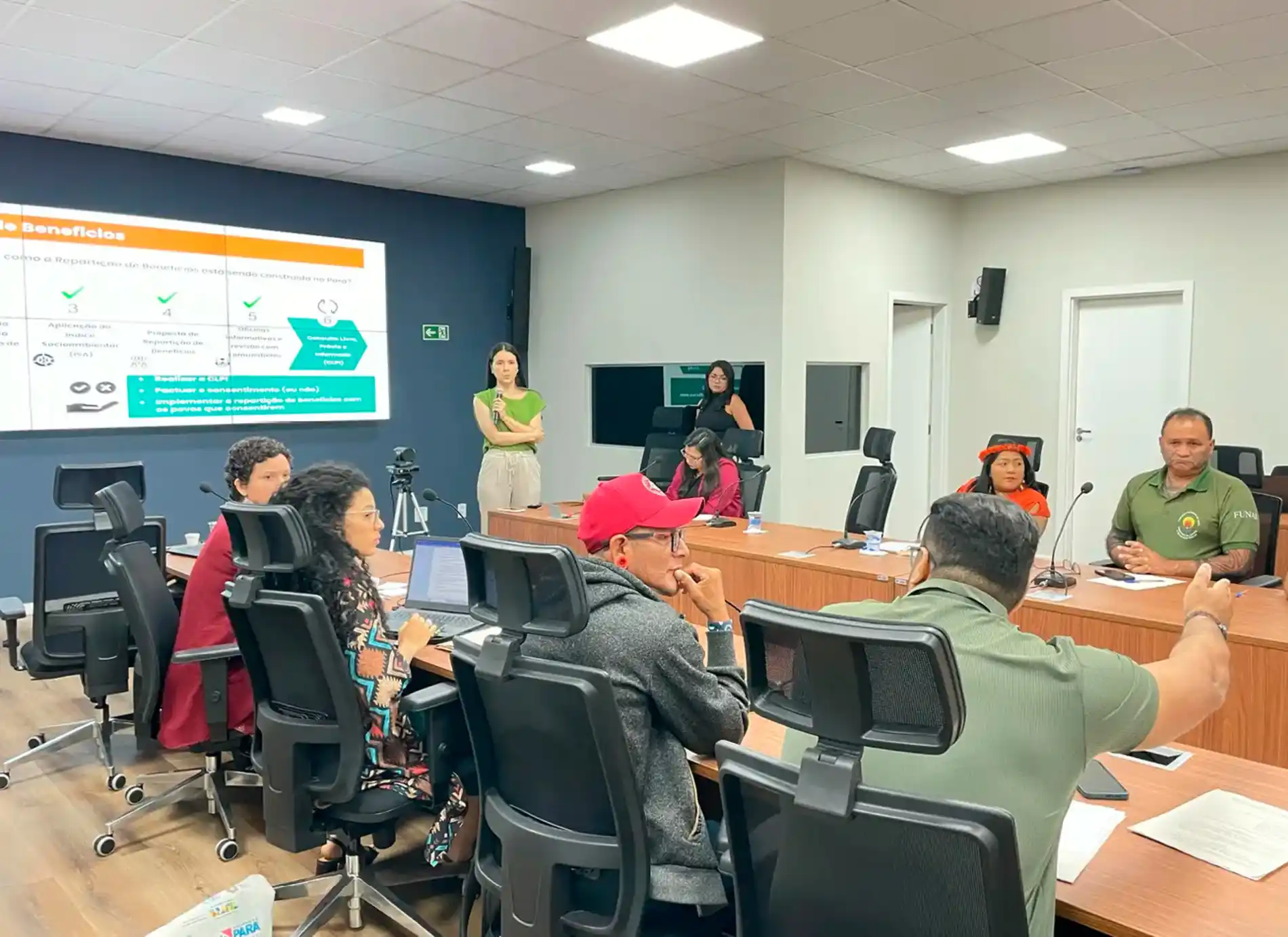 A secretária adjunta de Gestão de Recursos Hídricos e Clima da Semas, Renata Nobre, iniciou apresentando as propostas de repartição de benefícios do estado do Pará e a metodologia de alocação dos recursos. Durante a tarde, Andrelina Ribeiro, da Semas, explicou os mecanismos de acesso aos recursos.