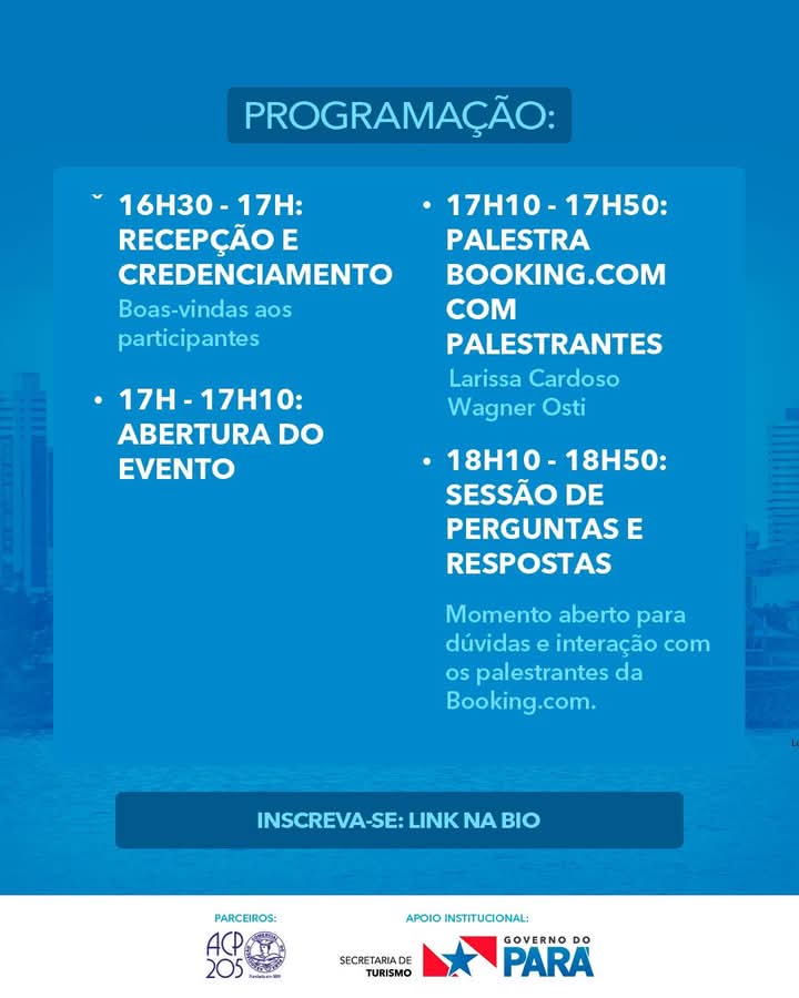 Nesta terça-feira, 27 de maio, a plataforma Booking realiza o Workshop sobre o cadastro de propriedades para a COP-30 na Booking.com