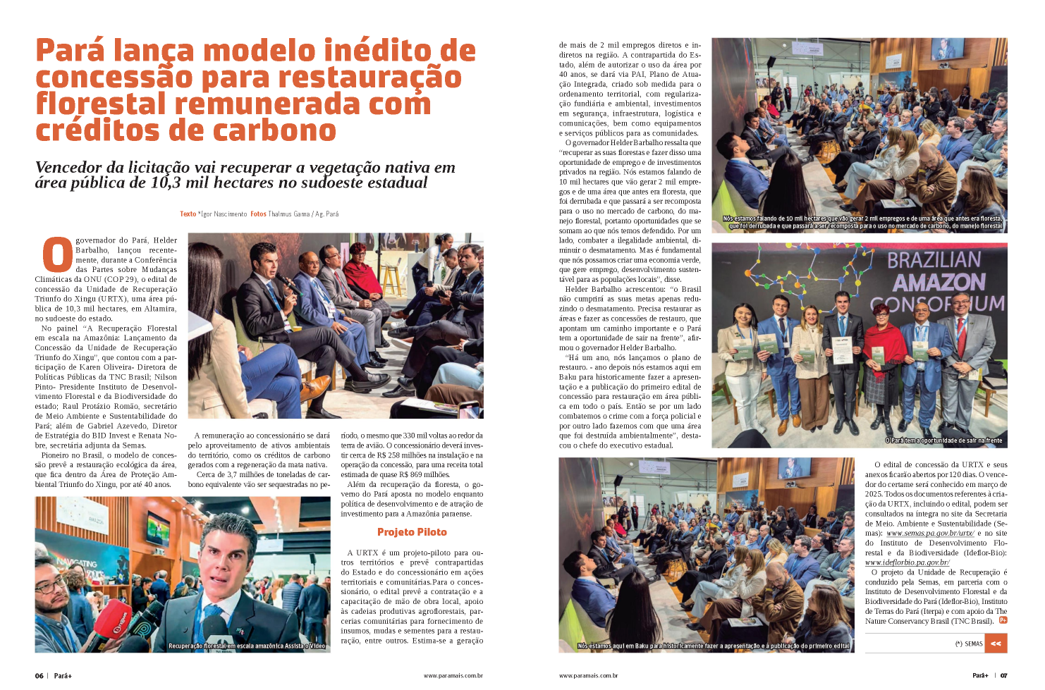 - O Pará lançou um modelo inédito de concessão para restauração florestal remunerada com créditos de carbono, reforçando seu papel de liderança em sustentabilidade.