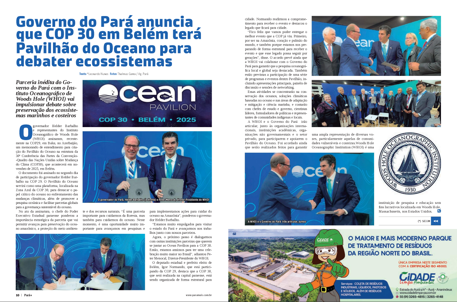 - O Governo do Pará anunciou o Pavilhão do Oceano para a COP 30, que acontecerá em Belém, com o objetivo de discutir os ecossistemas costeiros e marinhos.