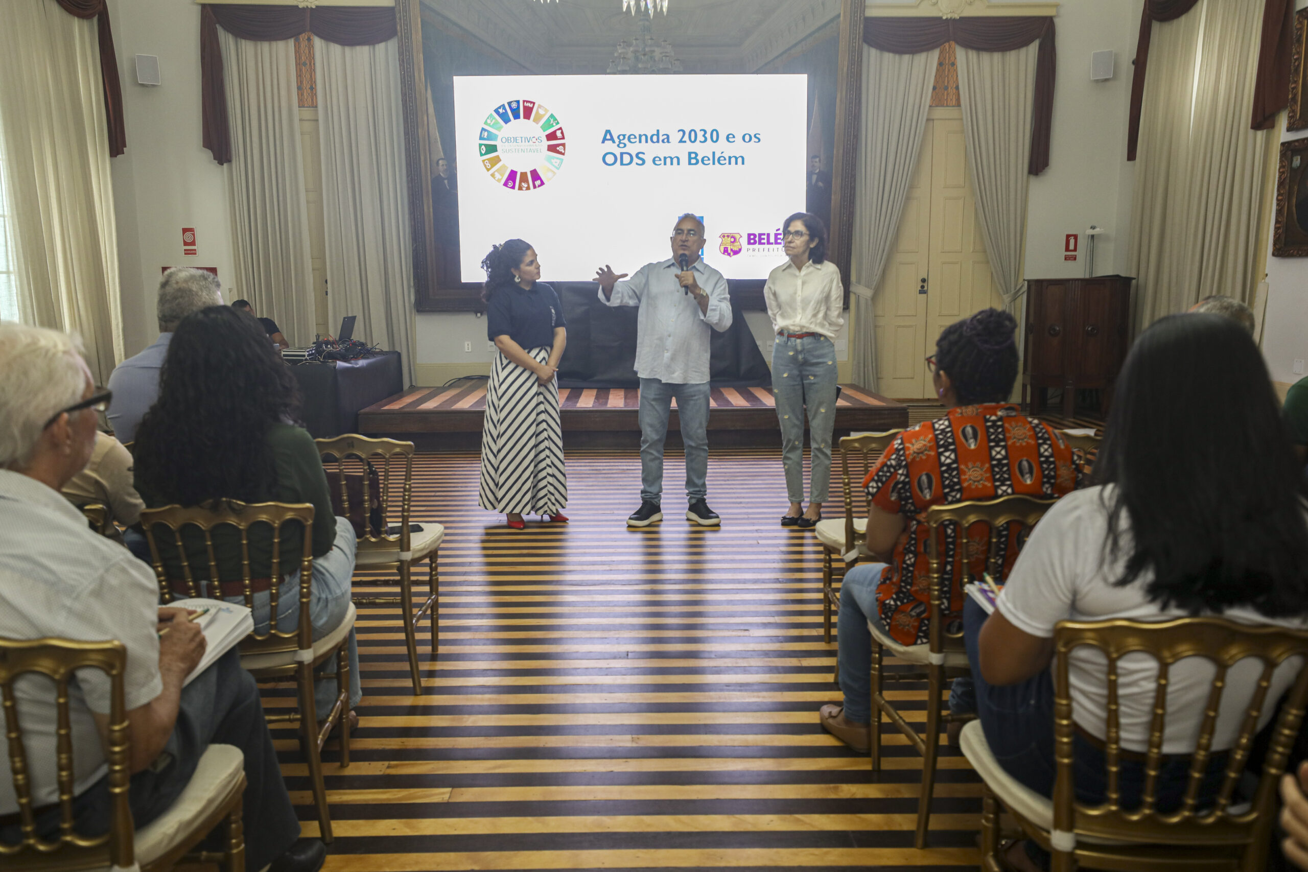 A Prefeitura de Belém intensifica seus esforços para identificar e implementar ações alinhadas aos 17 Objetivos do Desenvolvimento Sustentável (ODS) da Agenda 2030, estabelecida pela Organização das Nações Unidas (ONU). Nesta segunda-feira, 24, gestores de diversos órgãos municipais participaram da oficina “Diálogos Agenda 2030, ODS em Belém: herança do povo, patrimônio do mundo”, realizada no auditório do Palácio Antônio Lemos.