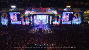 No último sábado (15), o estacionamento do Novo Mangueirão em Belém foi o palco para cerca de 150 mil pessoas que participaram do terceiro dia do “Parárraiá, o São João da Amazônia”. O evento, organizado pelo Governo do Pará por meio da Secretaria de Estado de Cultura (Secult), contou com apresentações de Manu Bahtidão, Dennis DJ, Nattan, Xeiro Verde e a aparelhagem Príncipe Negro.